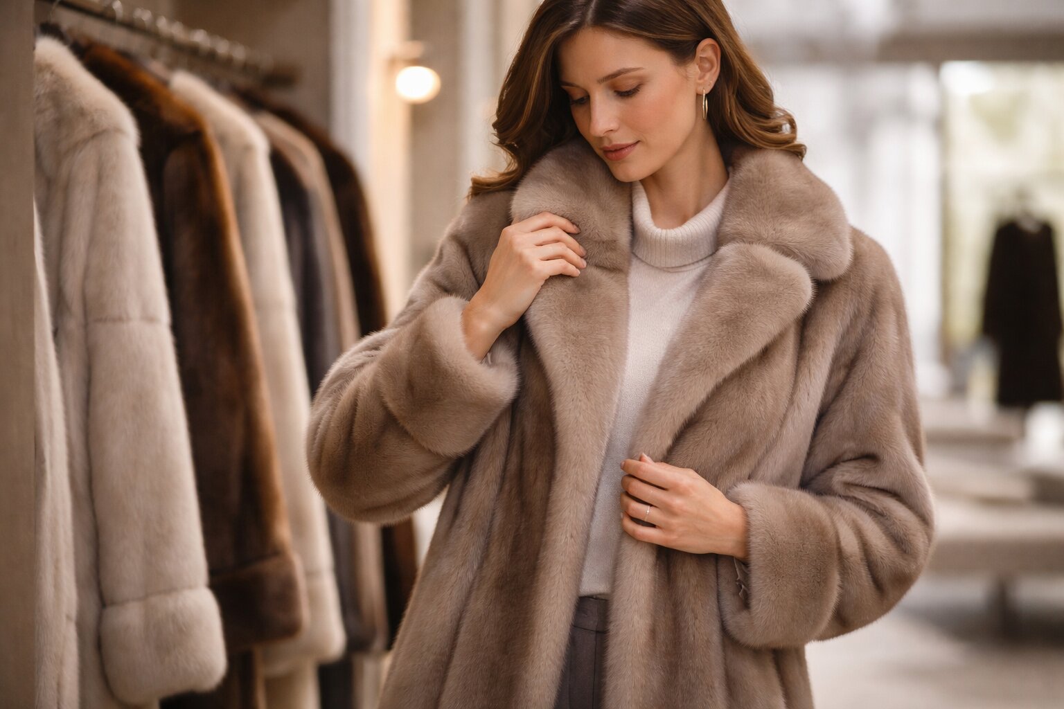 Luciul atrage primul, dar peste un an contează dacă gulerul, manșeta și căderea rămân echilibrate la o haină de blană naturală de nurcă